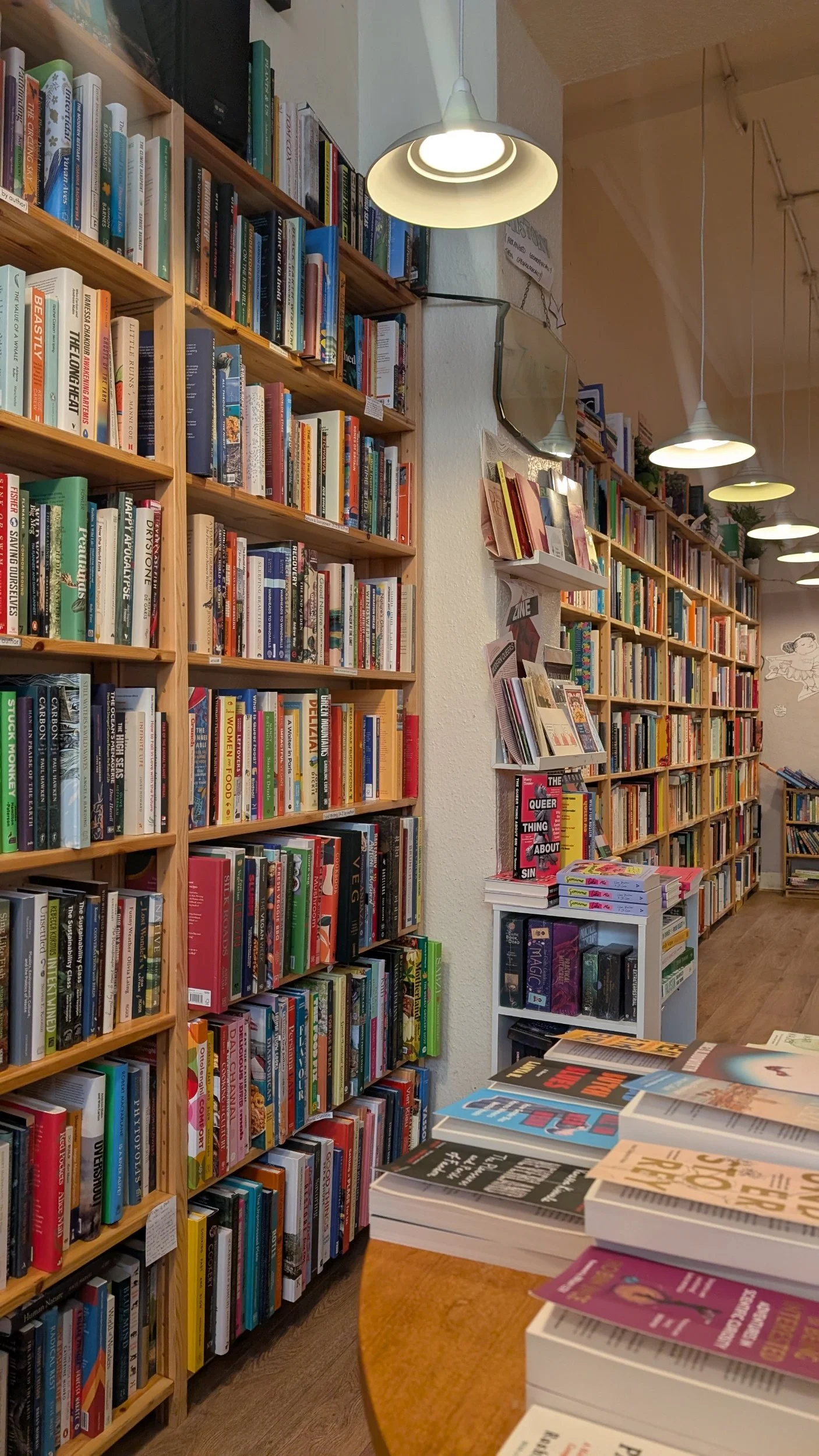 They a good range of horror, sci-fi and fiction novels. Along the back wall you will see a collection of zines and graphic novels, alongside a collection of witchcraft related books.
